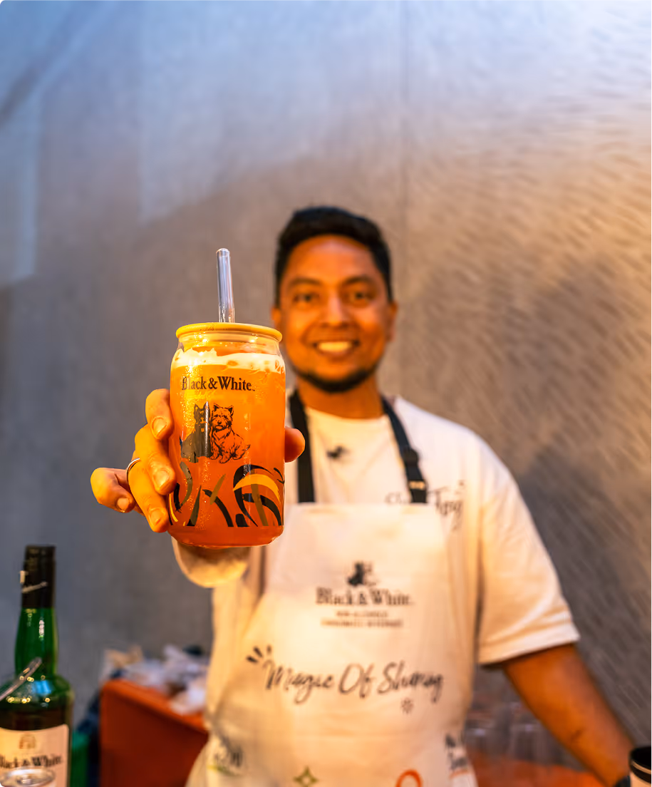 Confidence in the strategy came from understanding how people behave in social, high-energy environments. Drawing on event management services delivered across nightlife and brand experiences, we shaped a framework that prioritised interaction and shared moments. That expertise removed guesswork, allowing the experience to stay social and aligned with Black & White’s belief in bringing people together through simple acts of sharing.