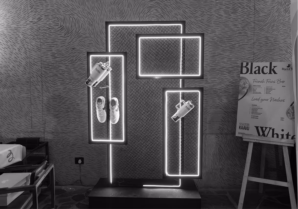 Black & White TFE Hangout translated Table For Everyone into a social night at Kaavu, Bengaluru. Set within a club environment, the experience invited guests to gather around shared food, drinks, and play. The focus stayed on togetherness, turning a night out into a collective moment of conversation and connection.